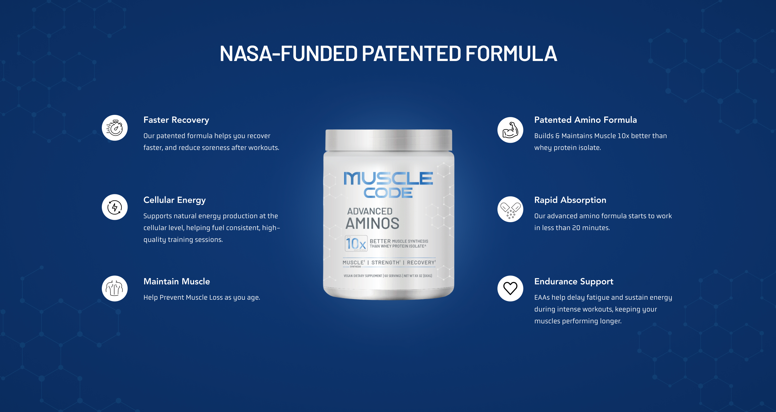Unlike generic amino blends or incomplete proteins, Muscle Code contains EAAs in the exact balance required for effective muscle protein synthesis. This ensures nothing is wasted, giving you better results with less effort.