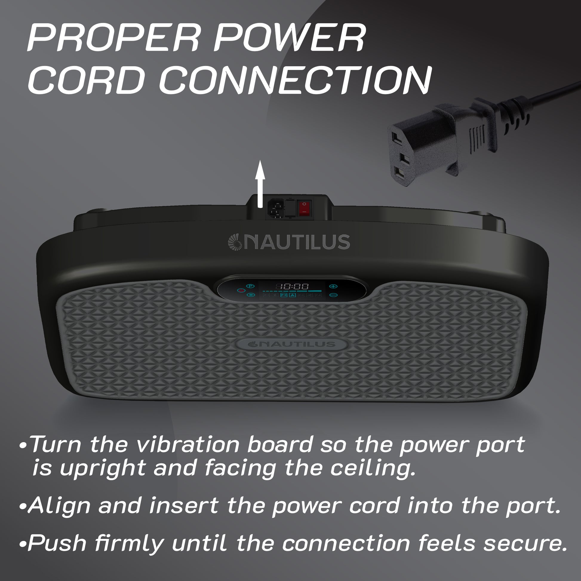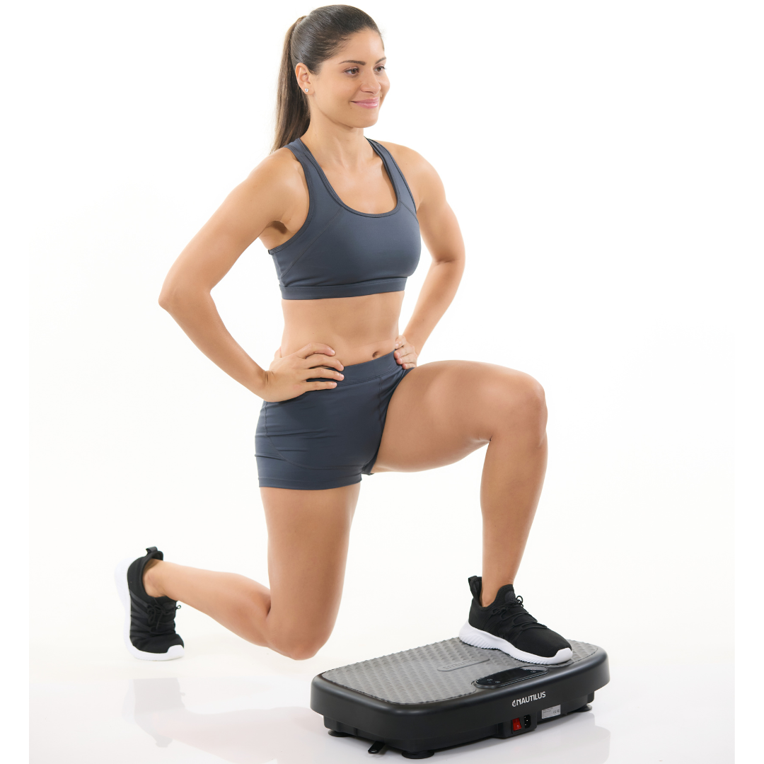 - Quiet motor delivers whole-body vibrations for efficient muscle activation